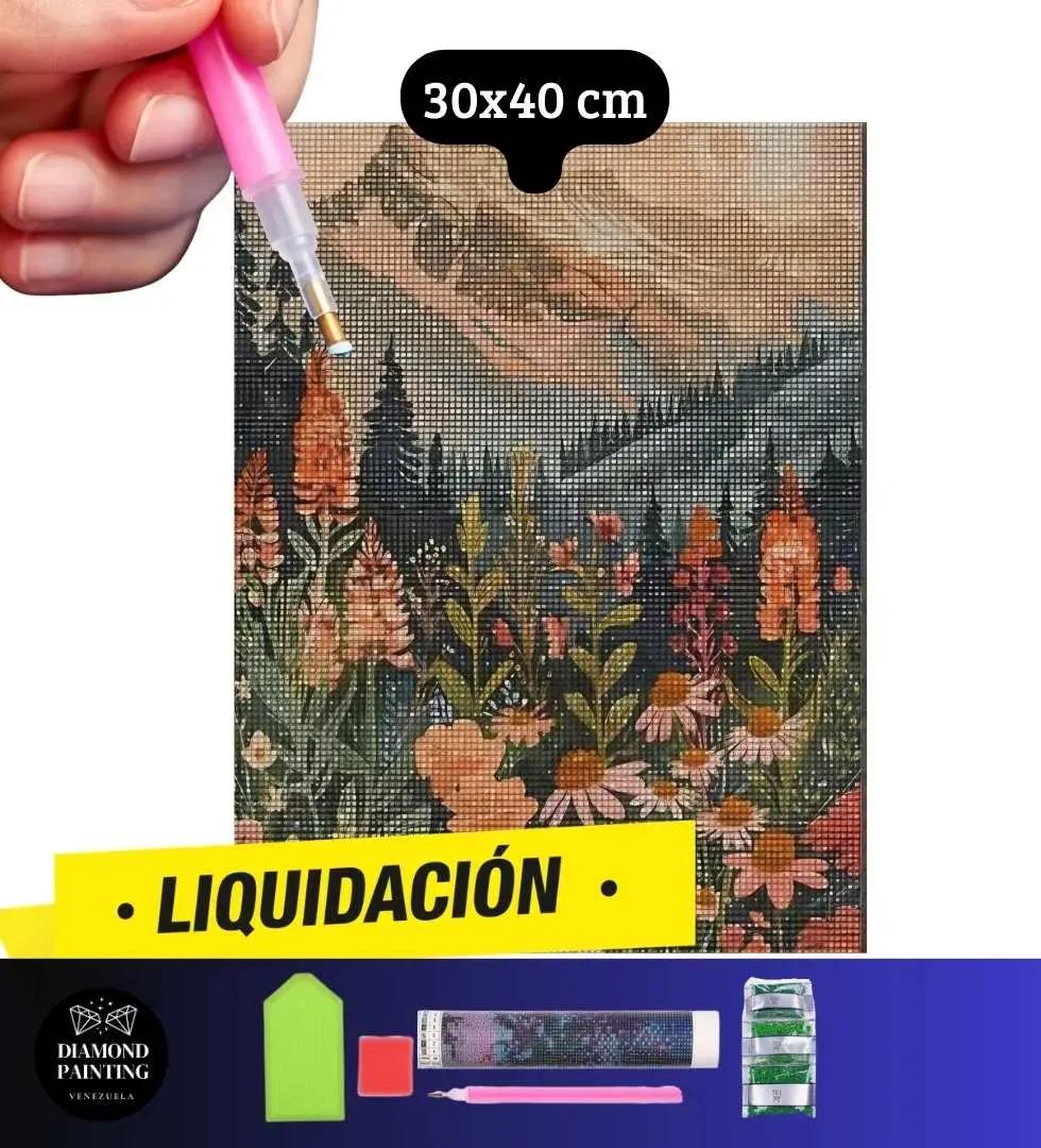 ⭐OFERTA Paisaje Vintage Acuarela 30x40cm - Kit Diamond Painting Estandar - Diamantes Redondos en Acrilico - Precio Euro BCV